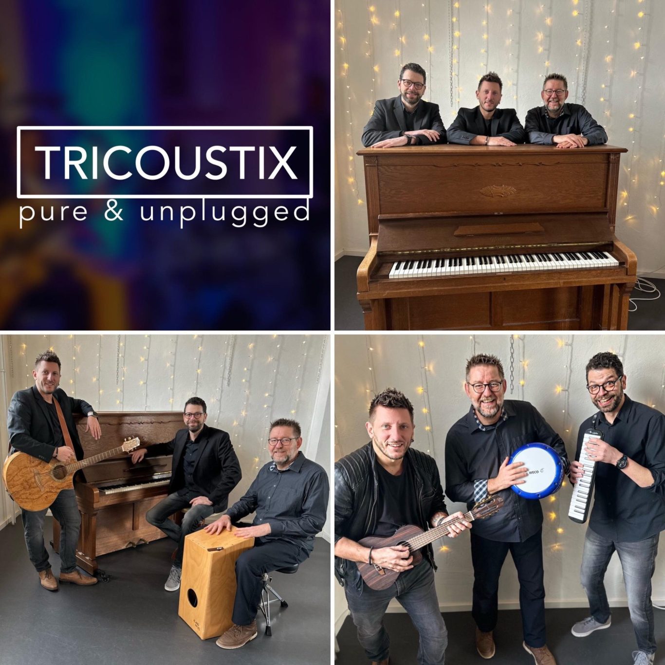 Tricoustix ist eine dreiköpfige Band, bestehend aus Musikern der Rheinland-Pfälzischen Musikszene. Die stilistischen Wurzeln der Südwestpfälzer Band liegen sehr breit gefächert im Rock, Pop, Swing, Jazz und Soul Bereich. Dabei beschränkt sich Tricoustix nicht nur auf ein spezielles Genre, sondern passt das Repertoire speziell Deiner Veranstaltung an.
